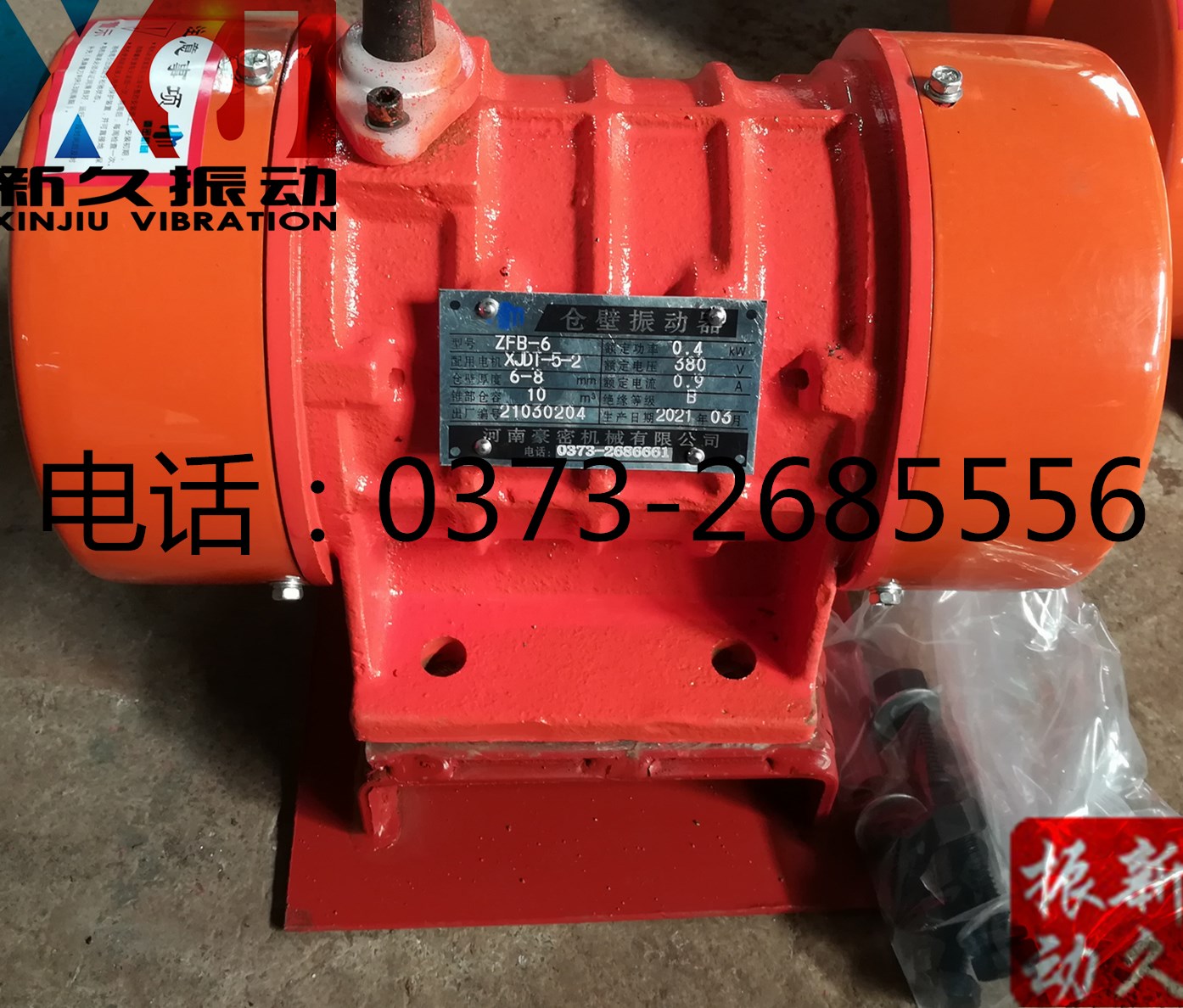 根據(jù)貴公司特殊要求訂制的4臺新久牌XJDT-2-2型振動電機、6臺ZFB-6型倉壁振動器,合計10臺,已通過壹米滴答物流發(fā)出。運費、送貨費、保價費已付清,預計三日左右到達。請保持手機暢通,注意查收。使用前請詳細閱讀振動電機使用維護說明書。