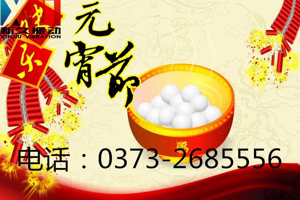 元宵到了,新鄉(xiāng)市新久振動機(jī)械有限公司全體員工愿你:一家團(tuán)團(tuán)圓圓和和睦睦,一年開開心心快快樂樂,一世平平安安健健康康;天天精精神神燦燦爛爛,月月風(fēng)風(fēng)光光喜氣洋洋;年年財(cái)源廣進(jìn),歲歲平安祥和!